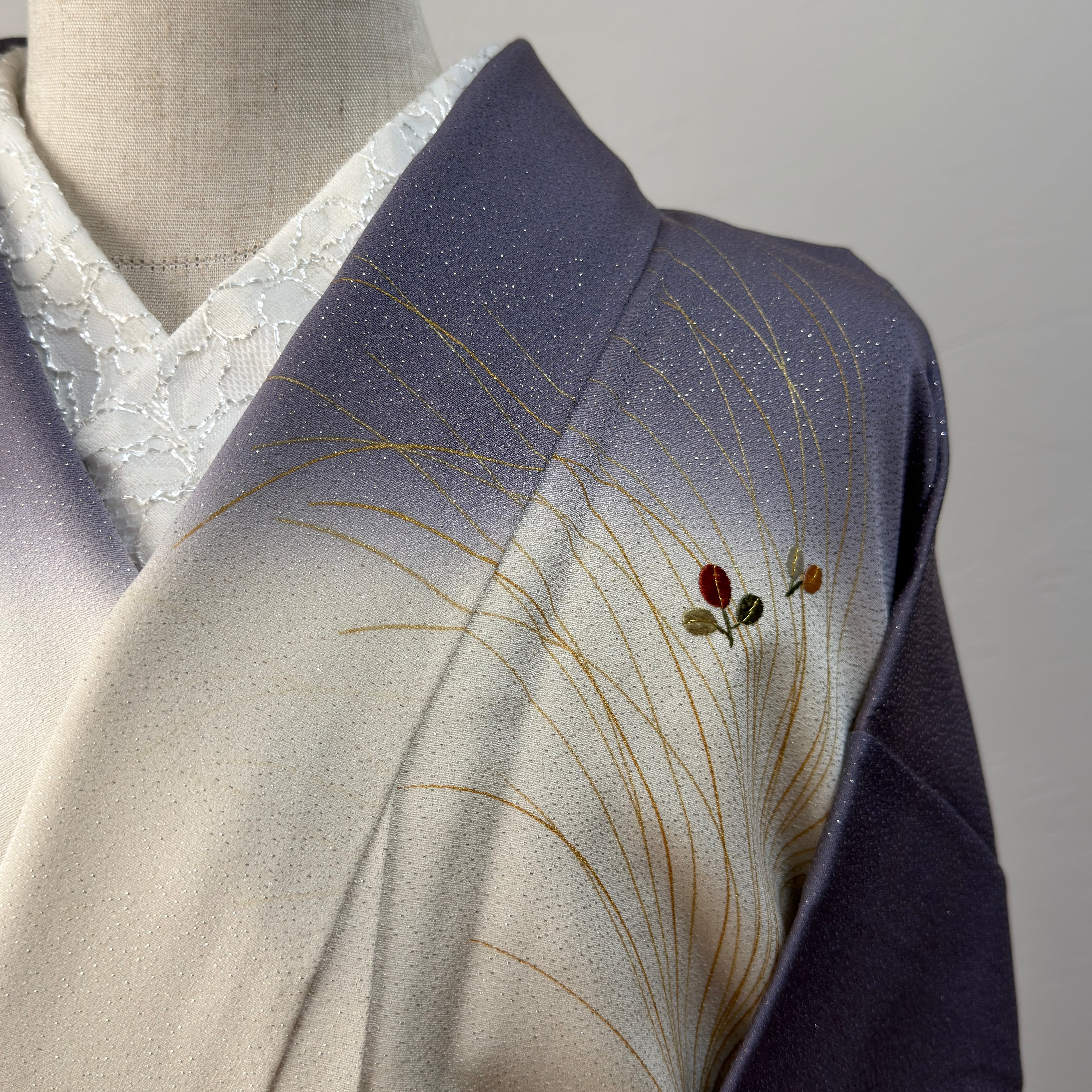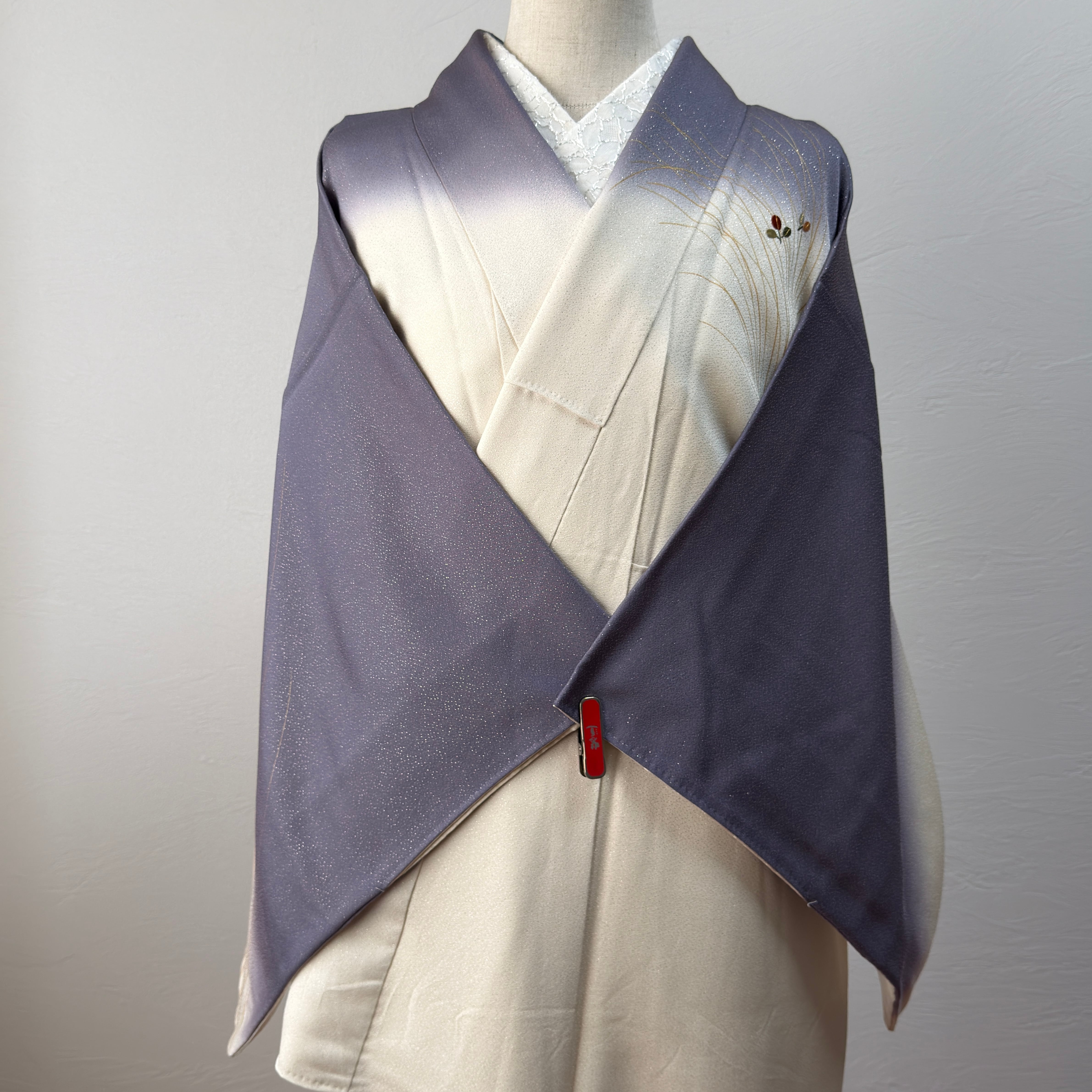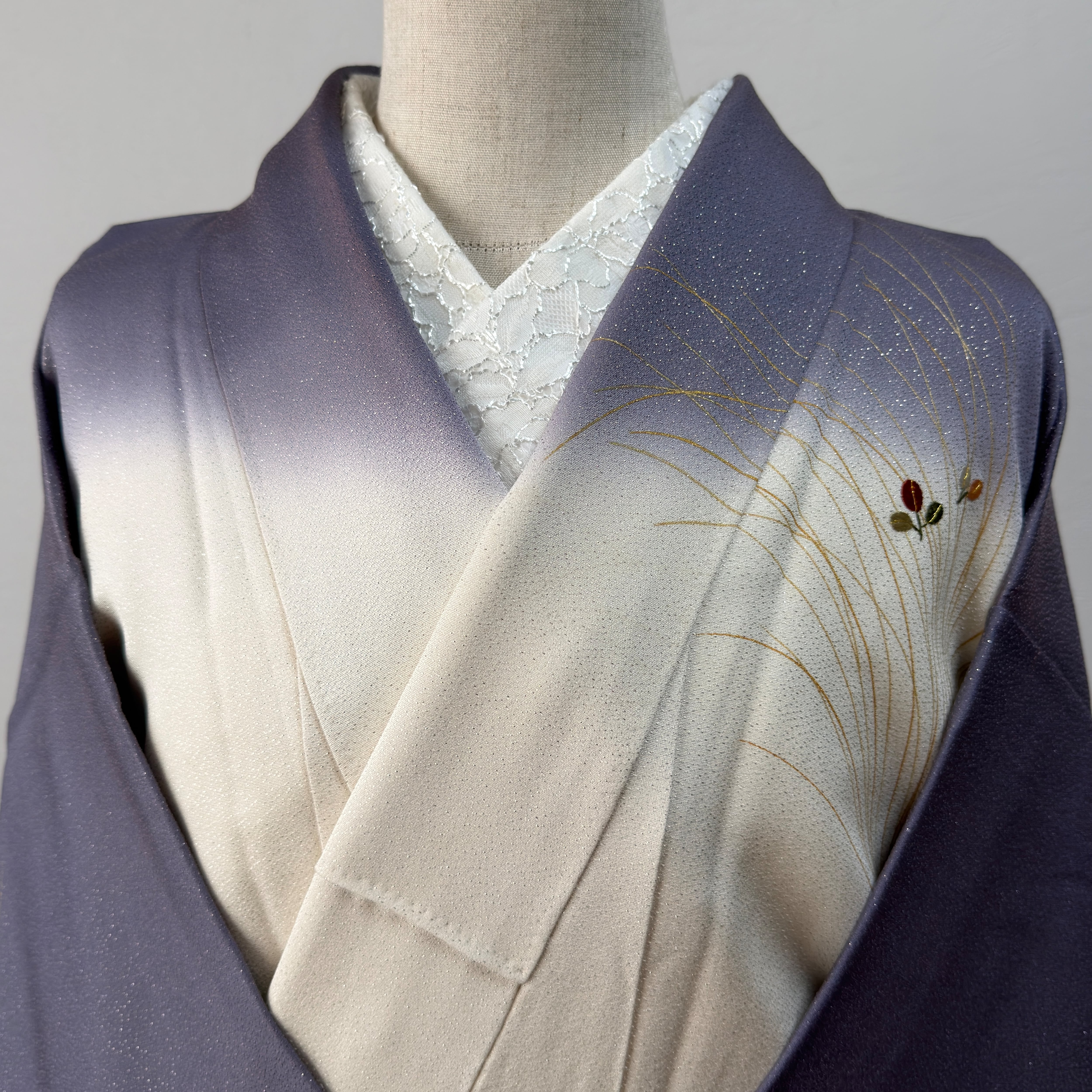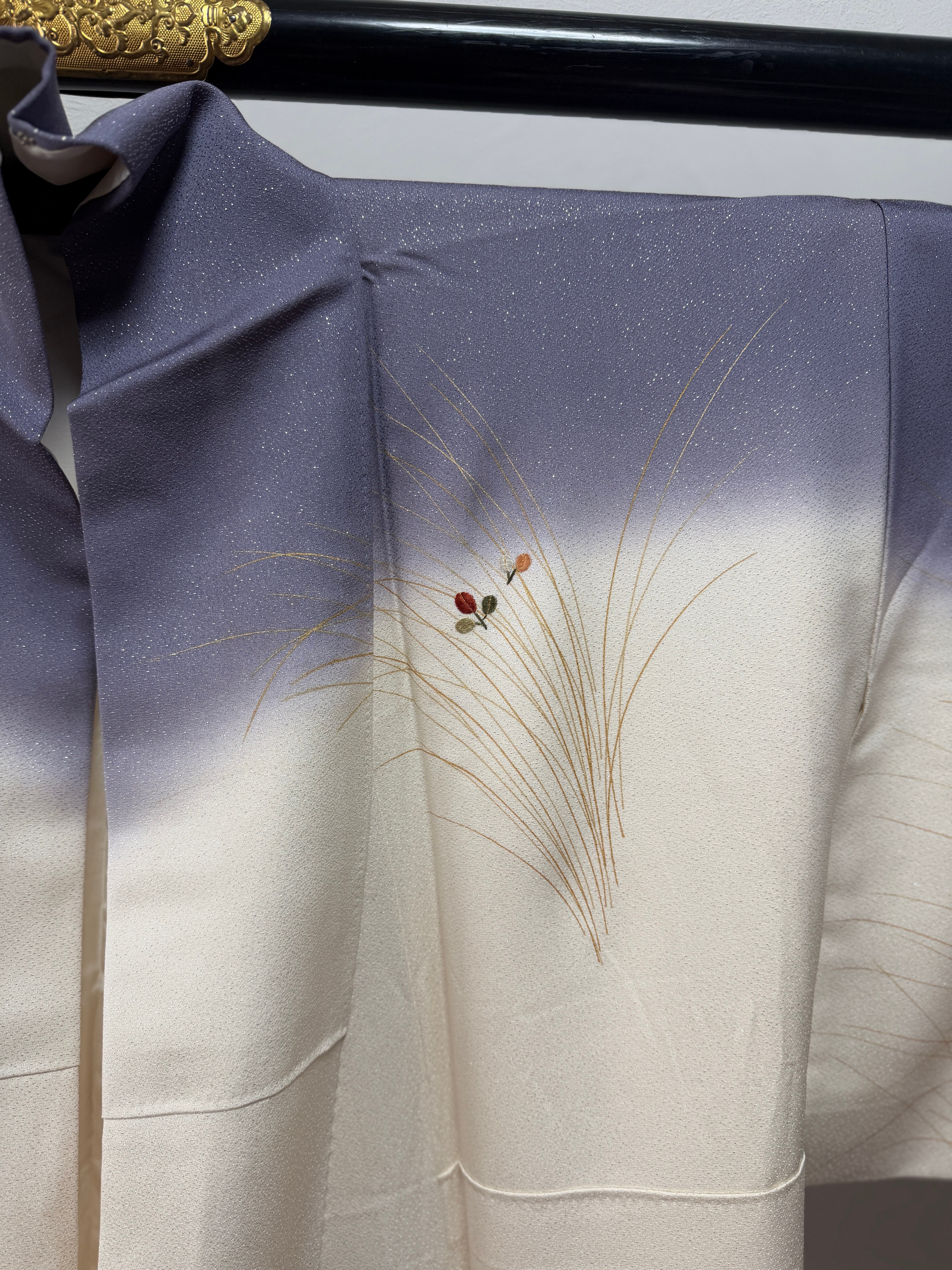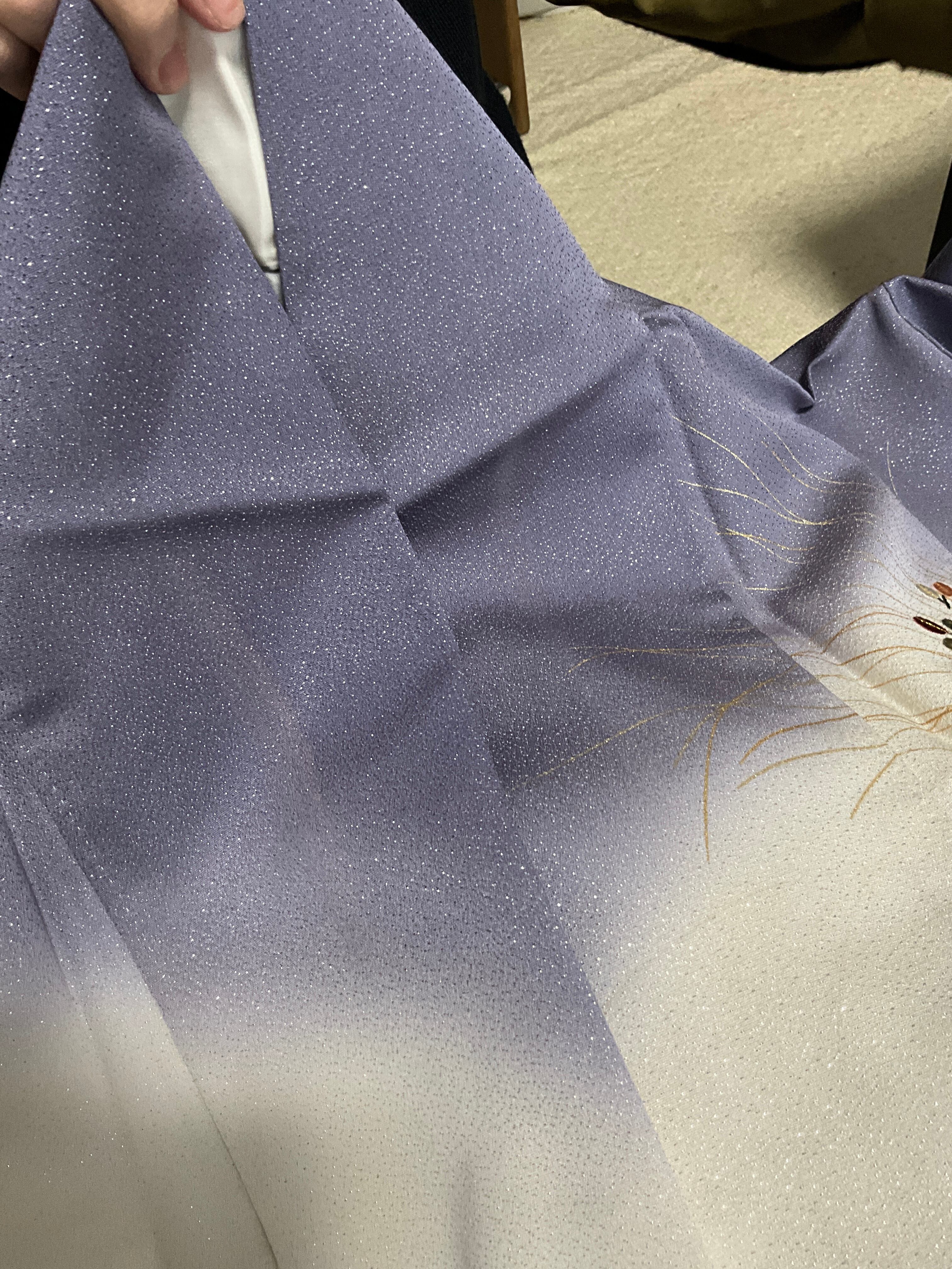 開いて撮り忘れ〈セミフォーマル〉生成り×くすみ紫☆ぼかし染め 秋草文様(ヲ)