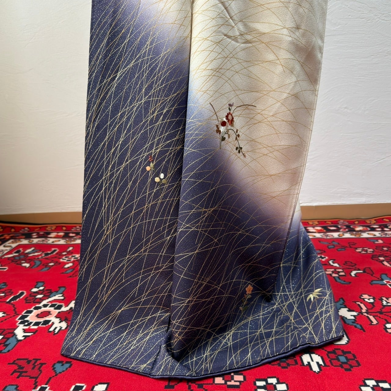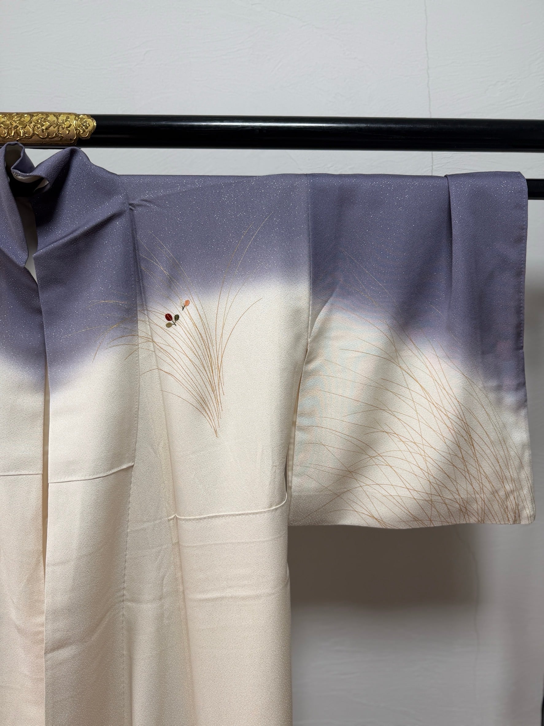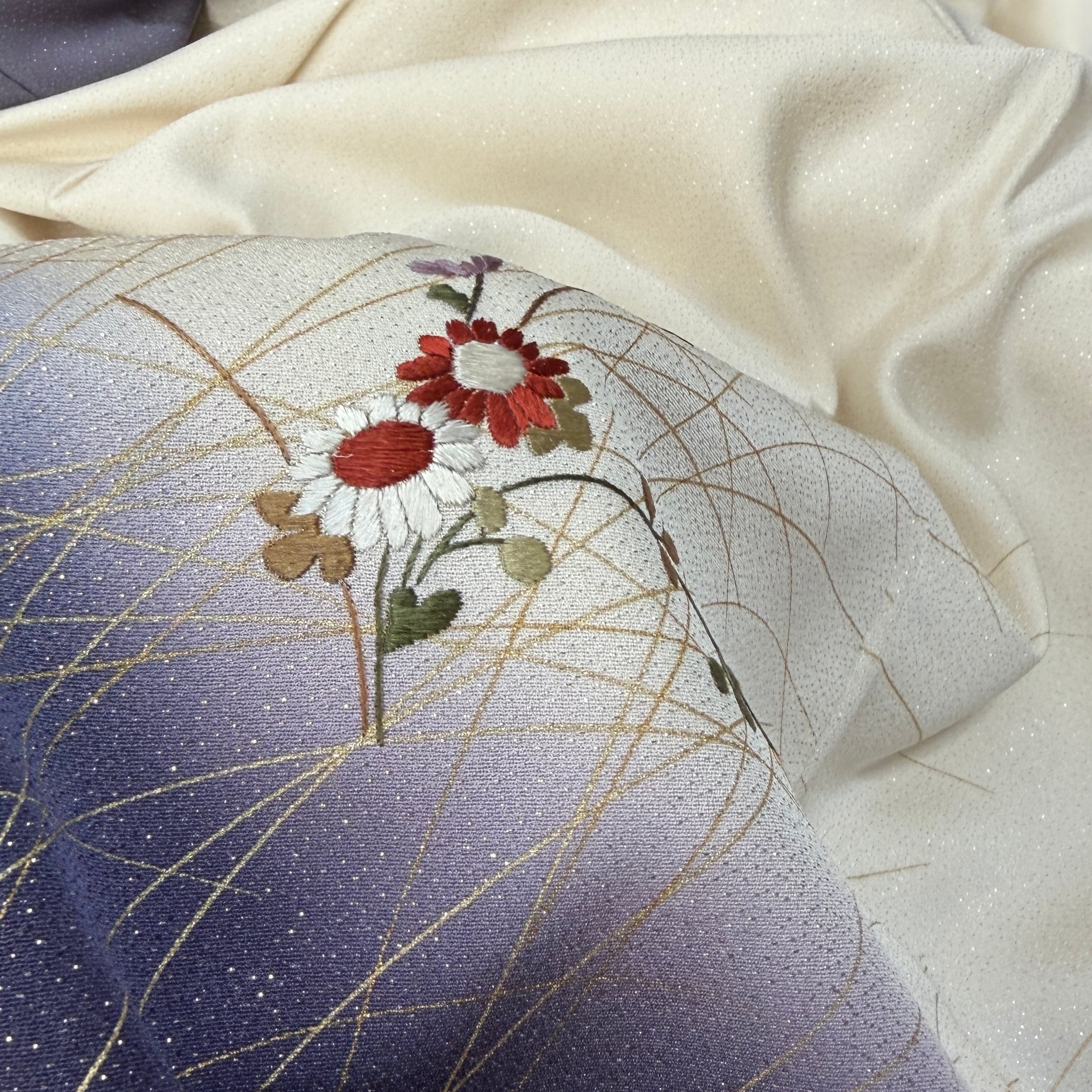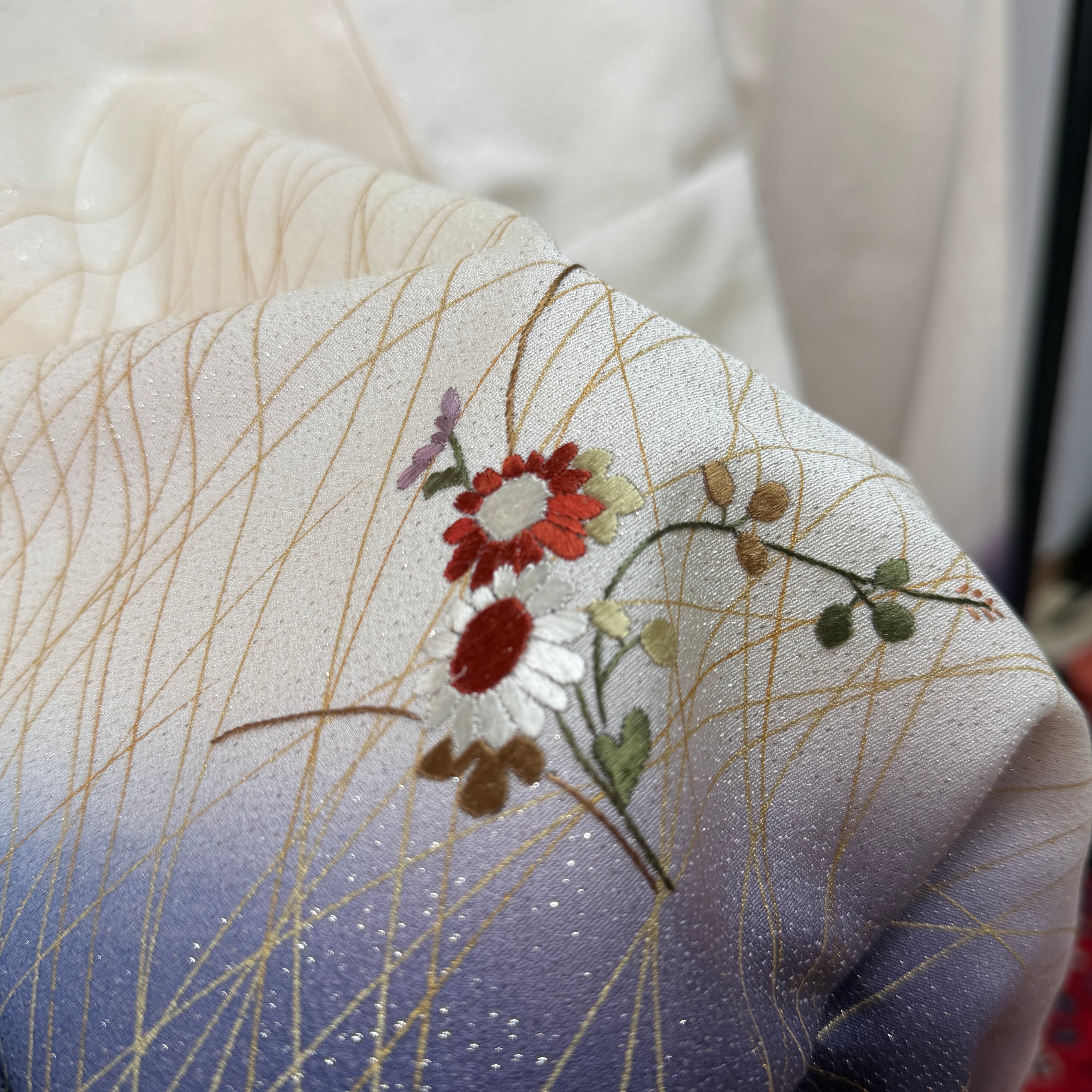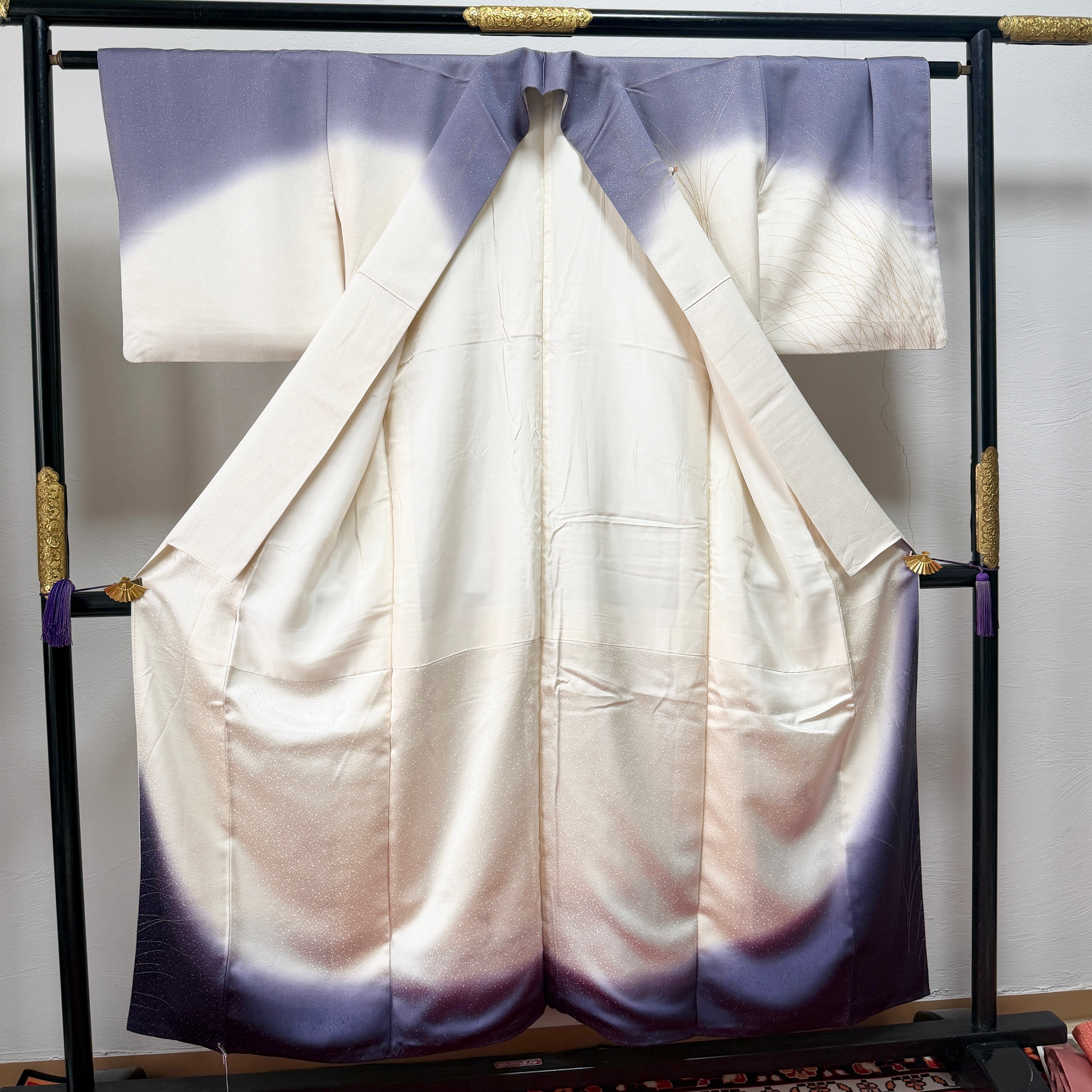 開いて撮り忘れ〈セミフォーマル〉生成り×くすみ紫☆ぼかし染め 秋草文様(ヲ)