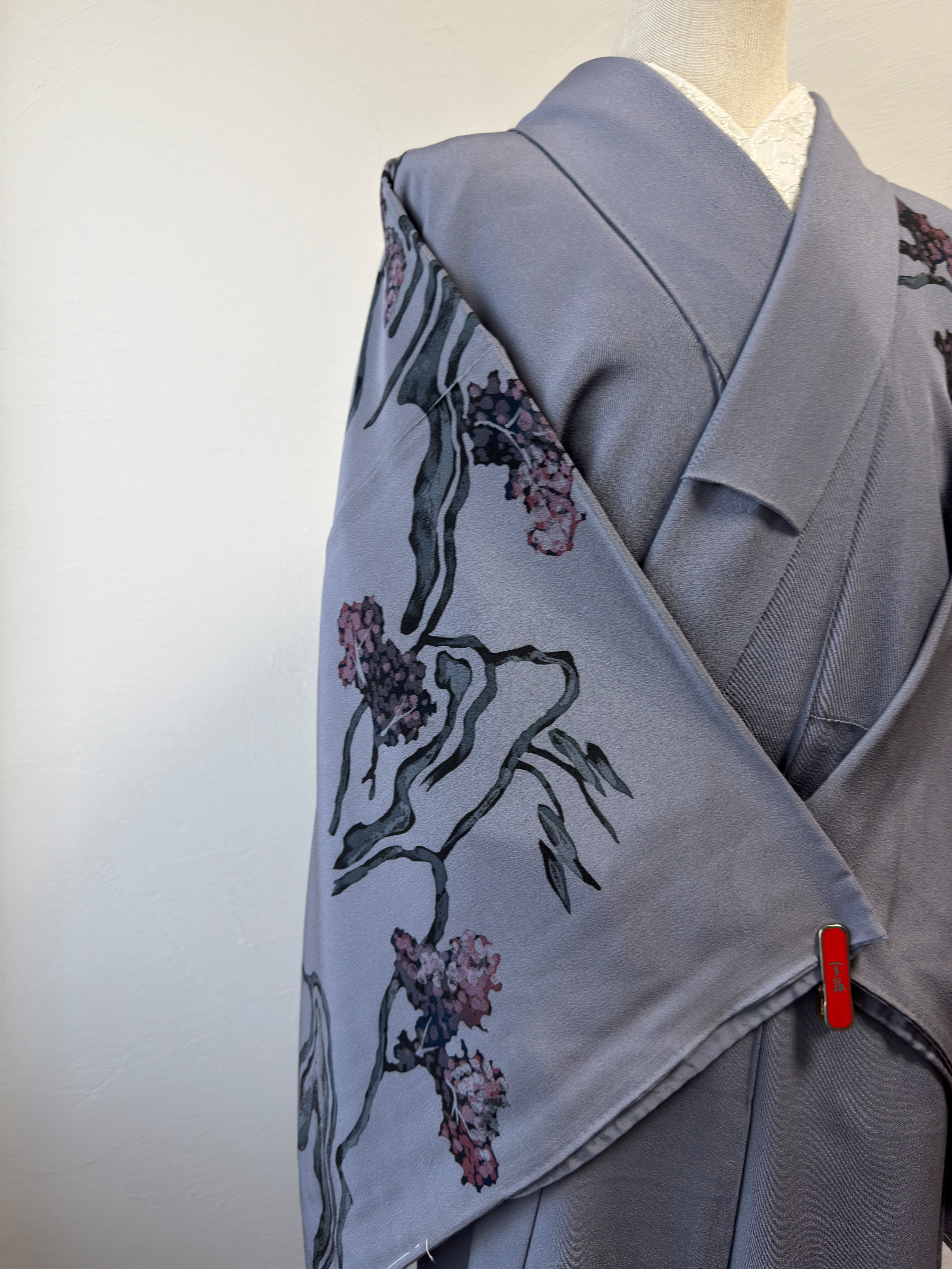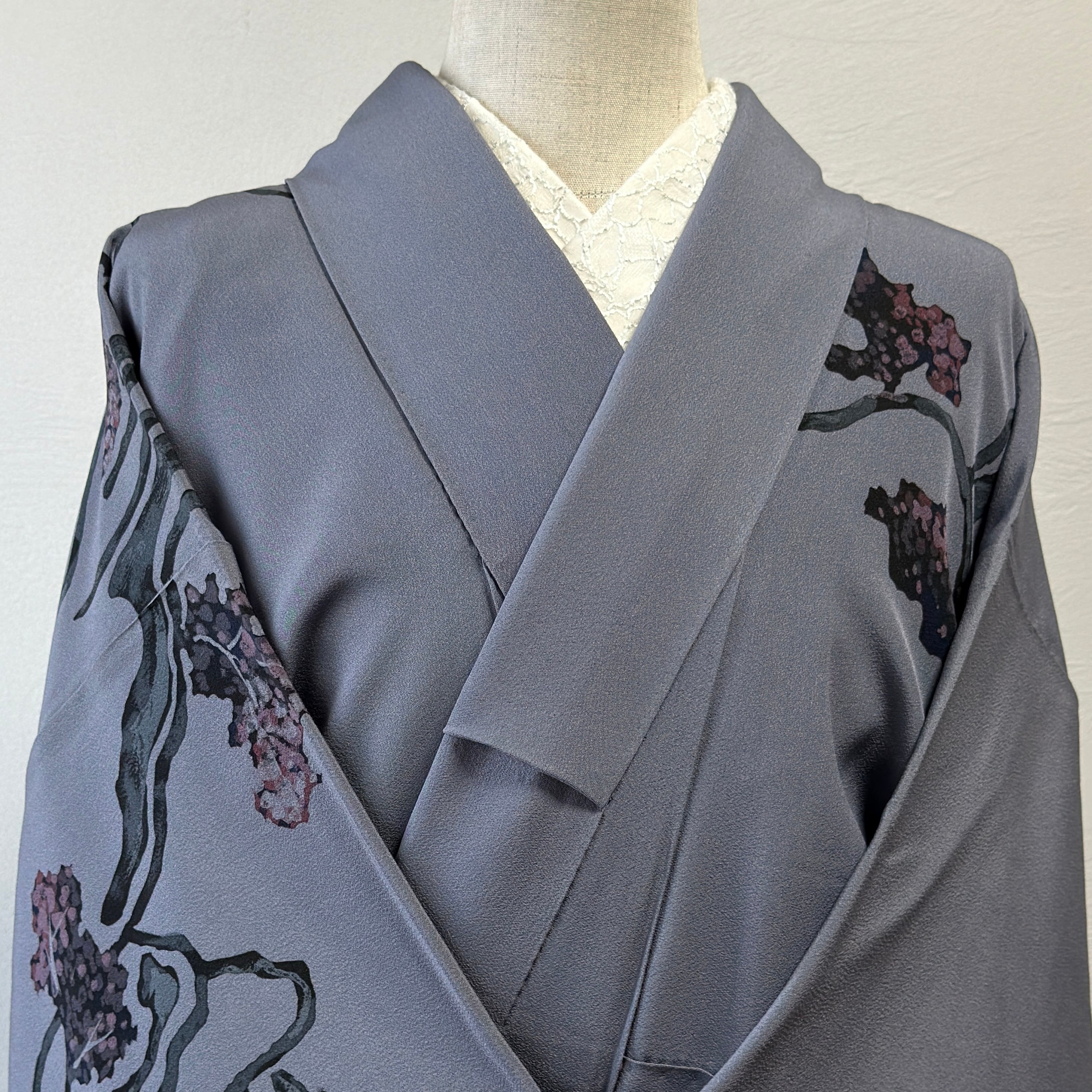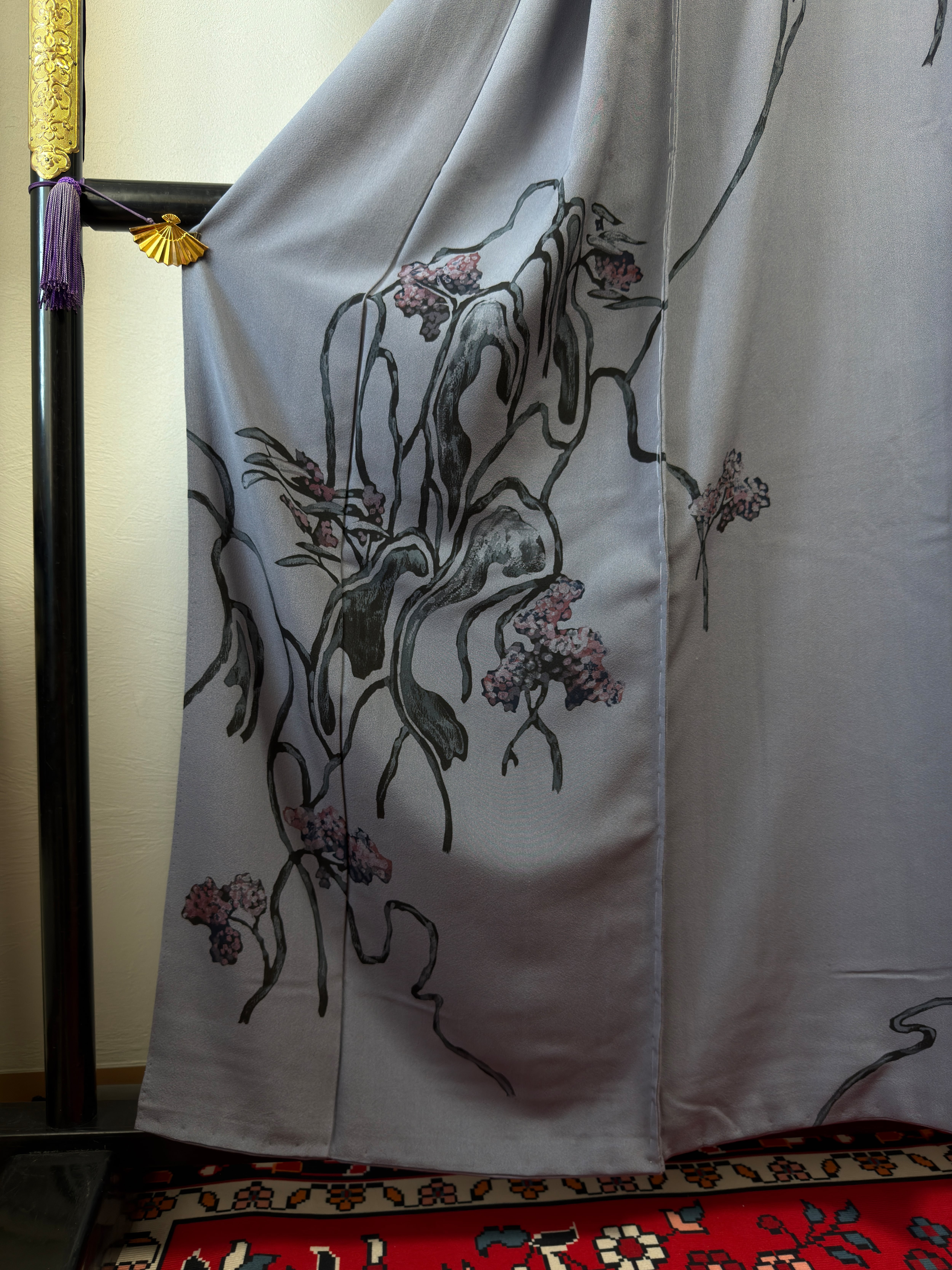 〈セミフォーマル〉グレイッシュパープル☆草花文様(ヲ)