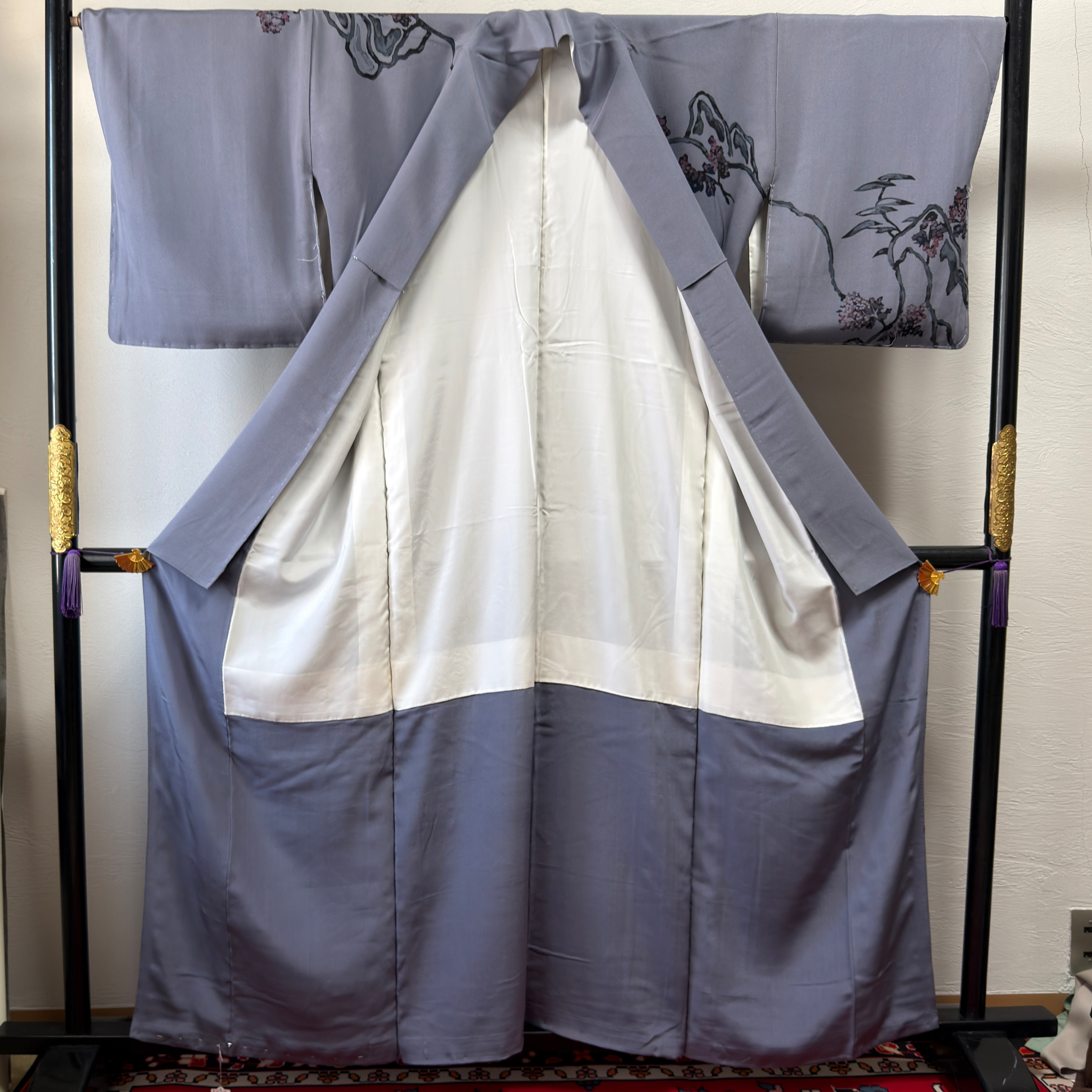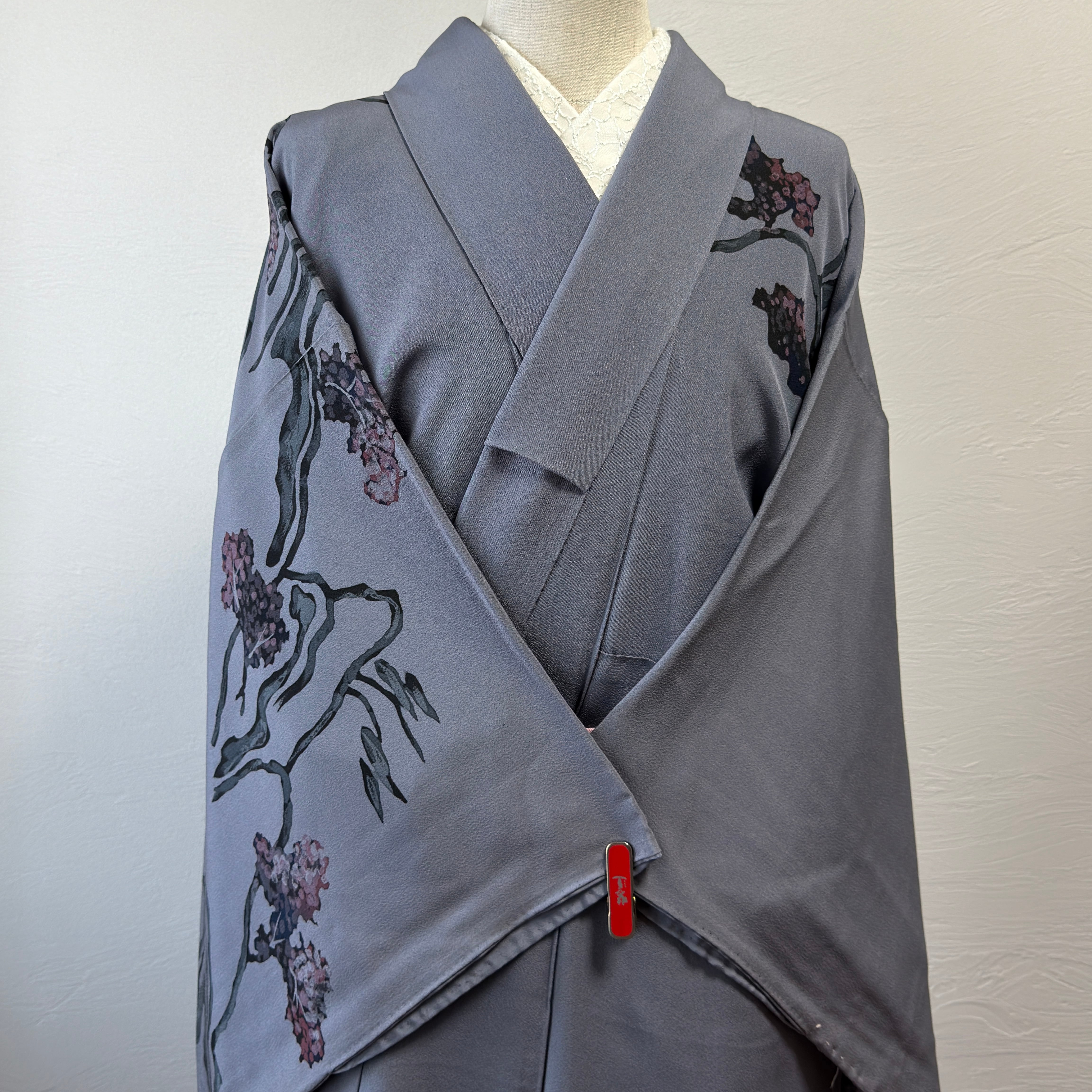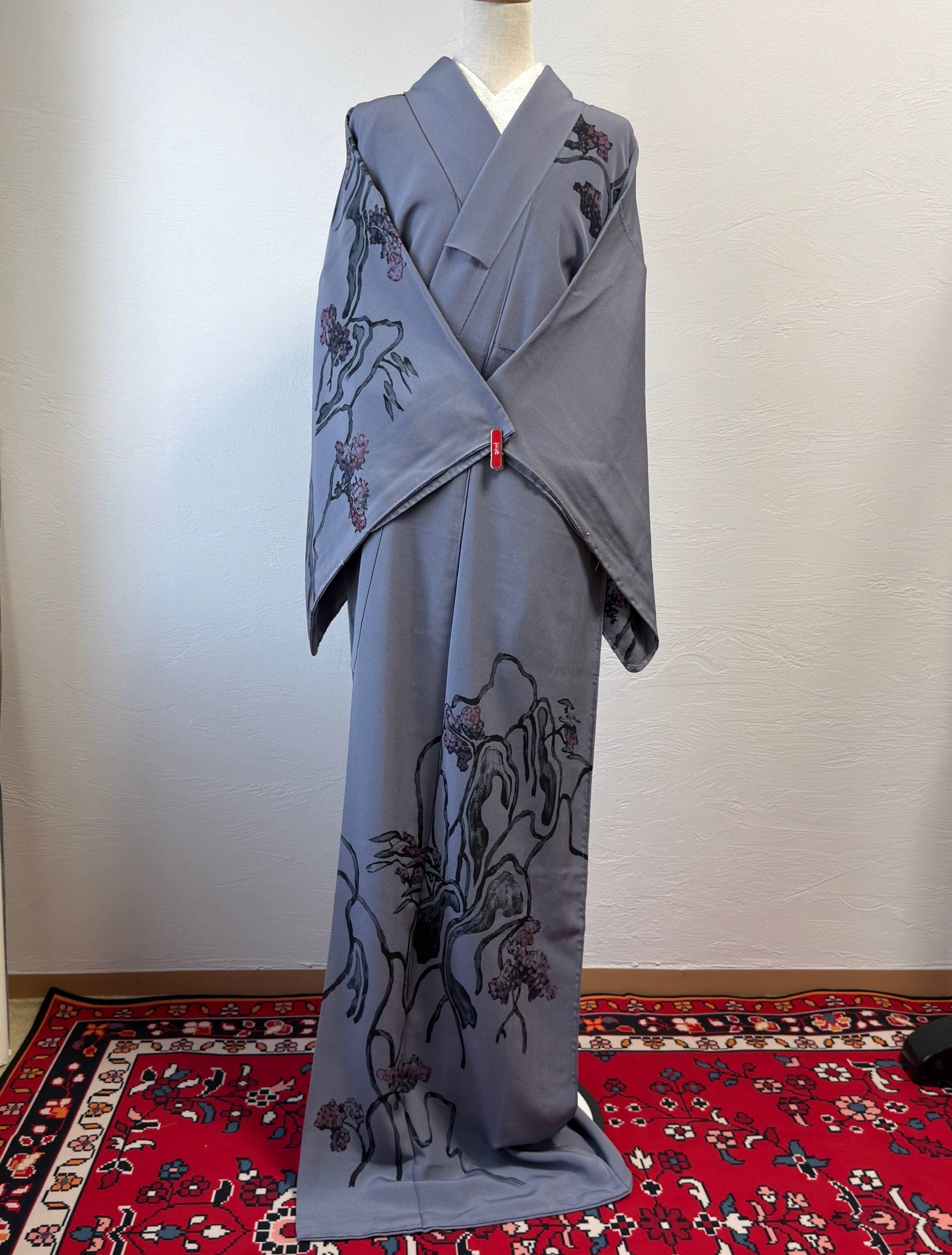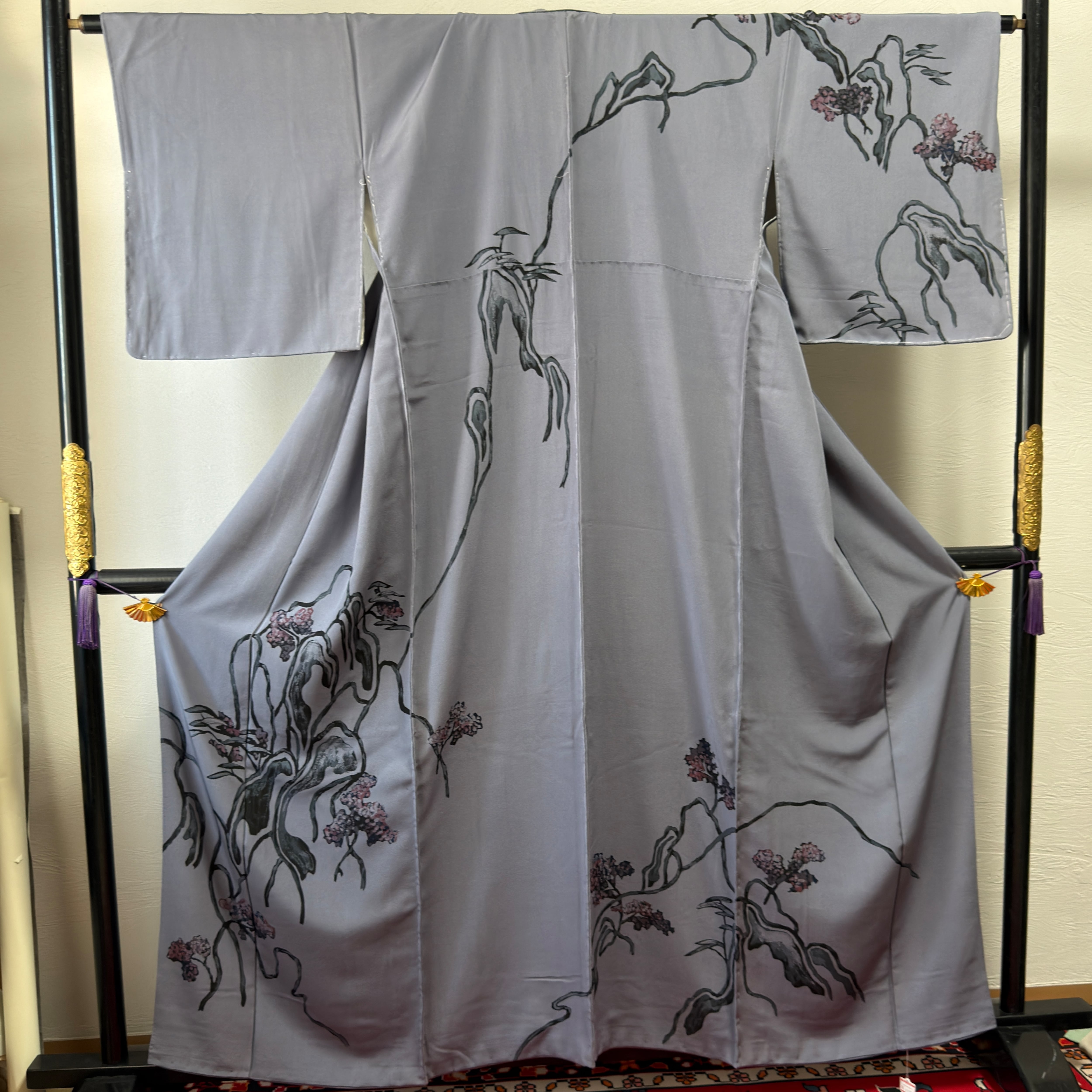 〈セミフォーマル〉グレイッシュパープル☆草花文様(ヲ)
