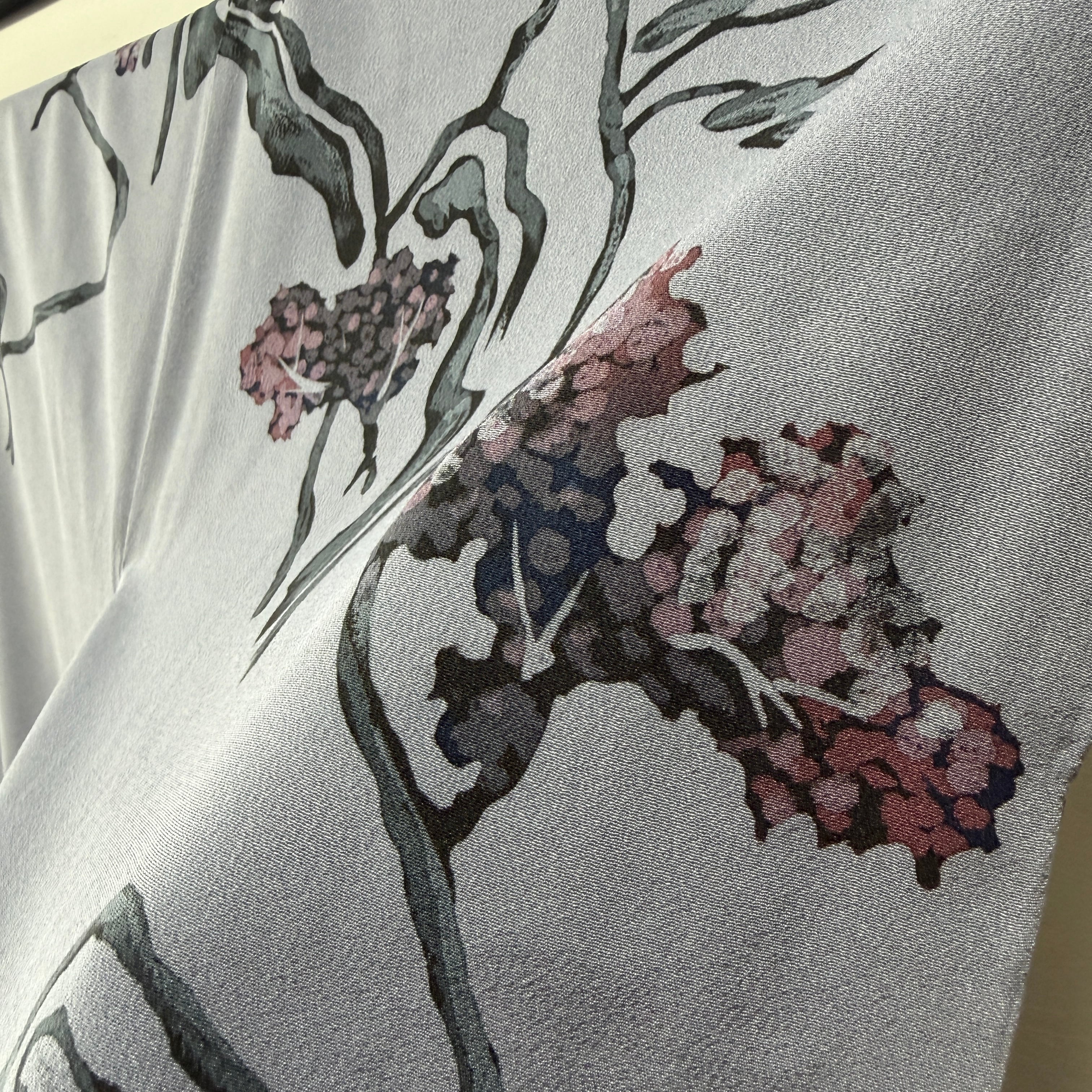 左右の袖から裾にかけてダイナミックに枝を伸ばす