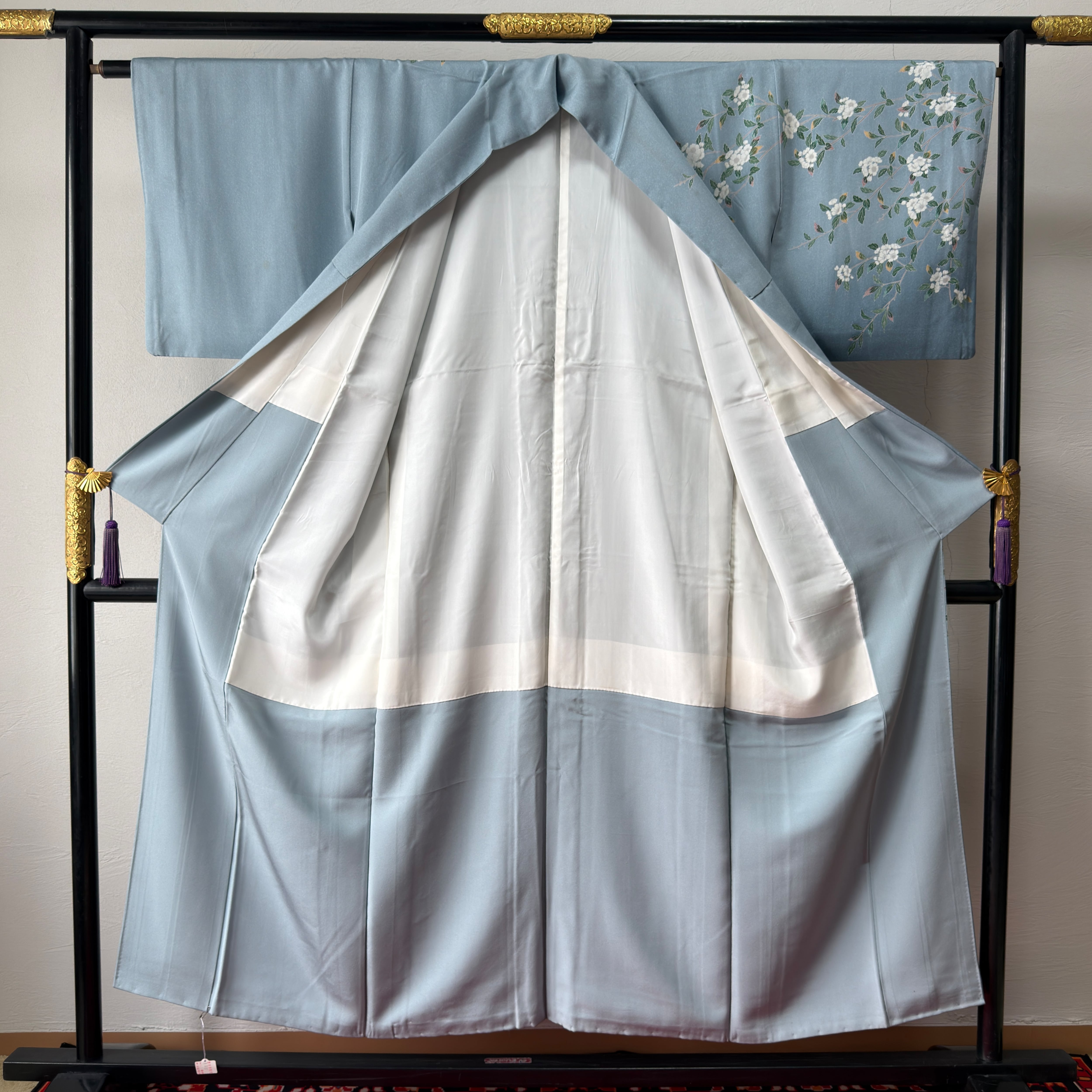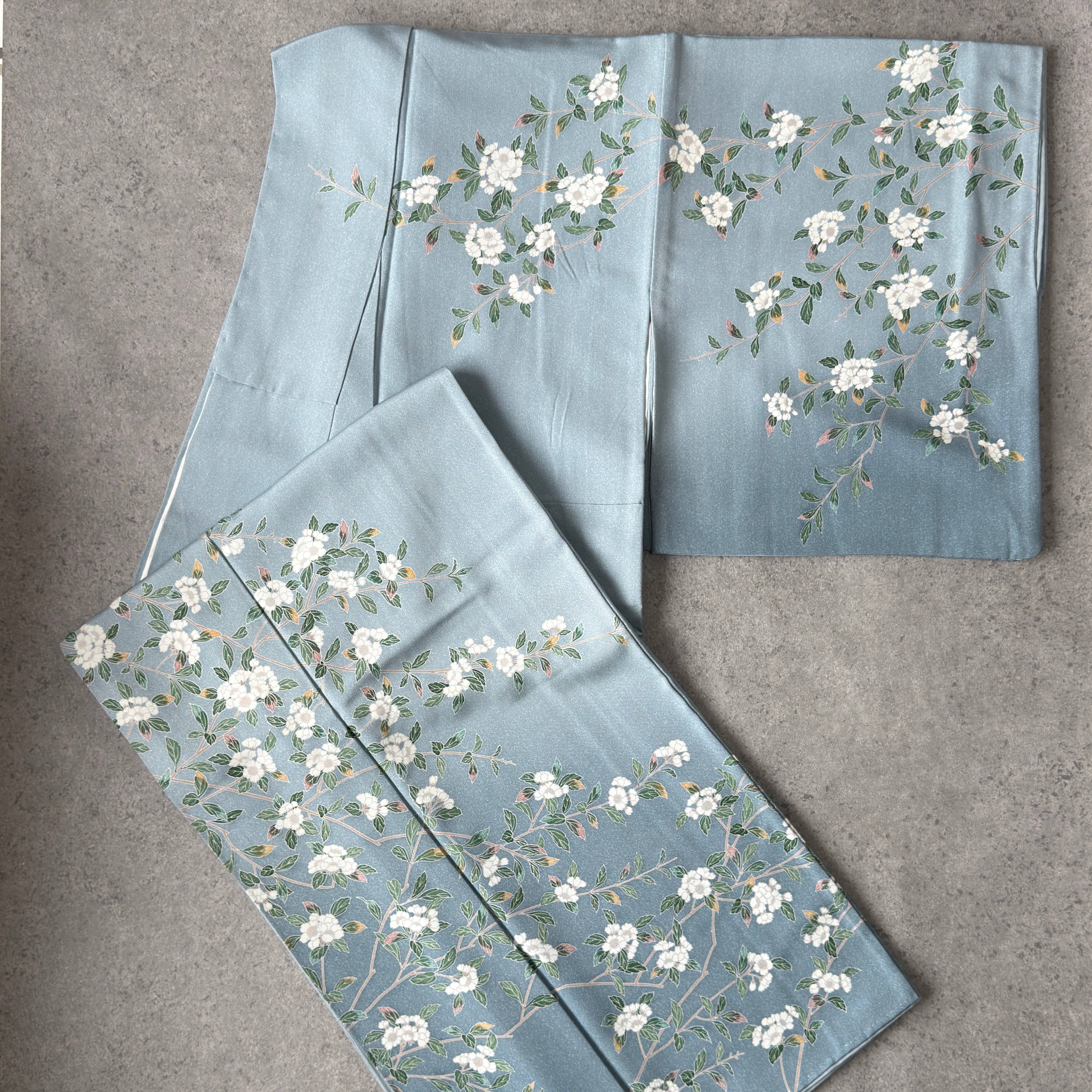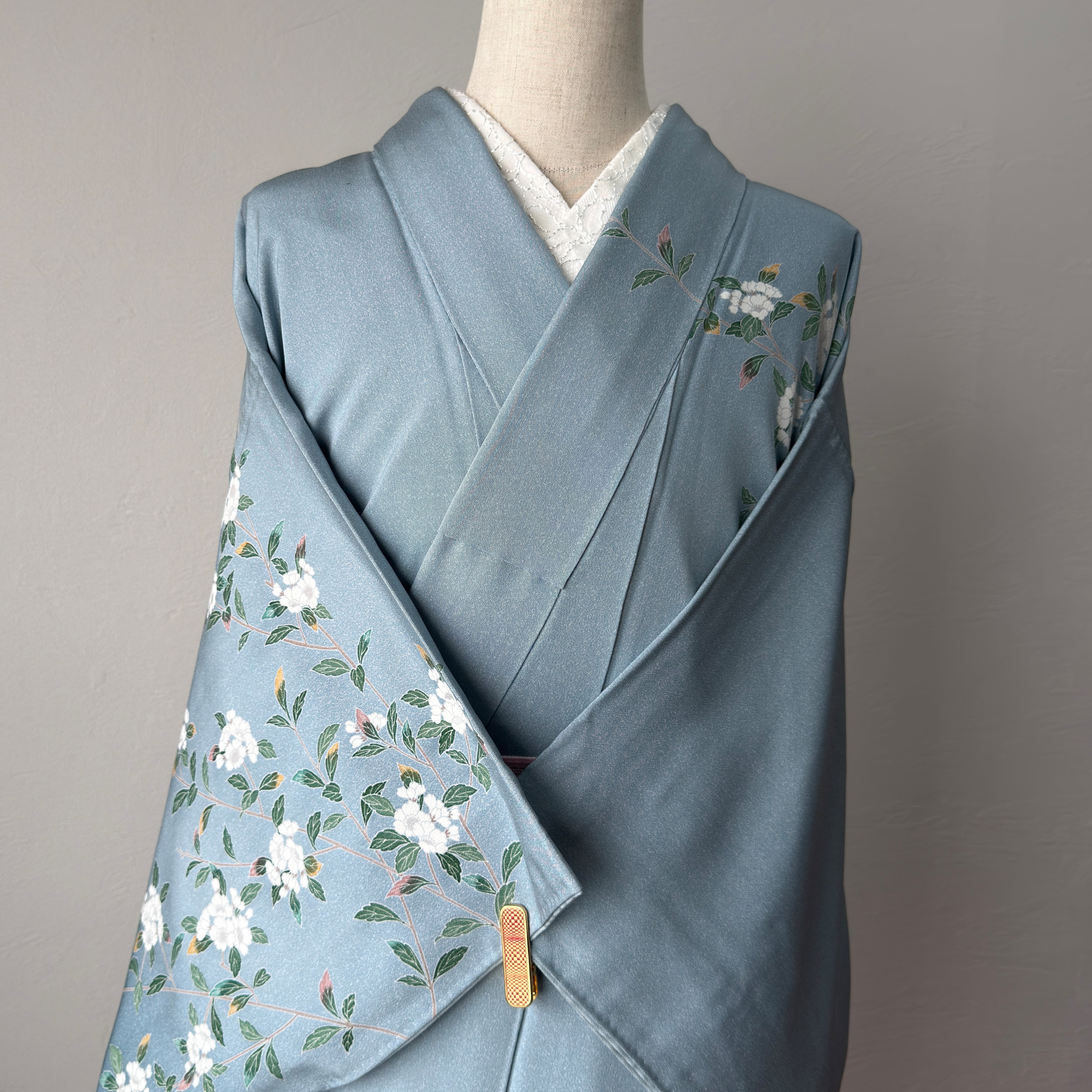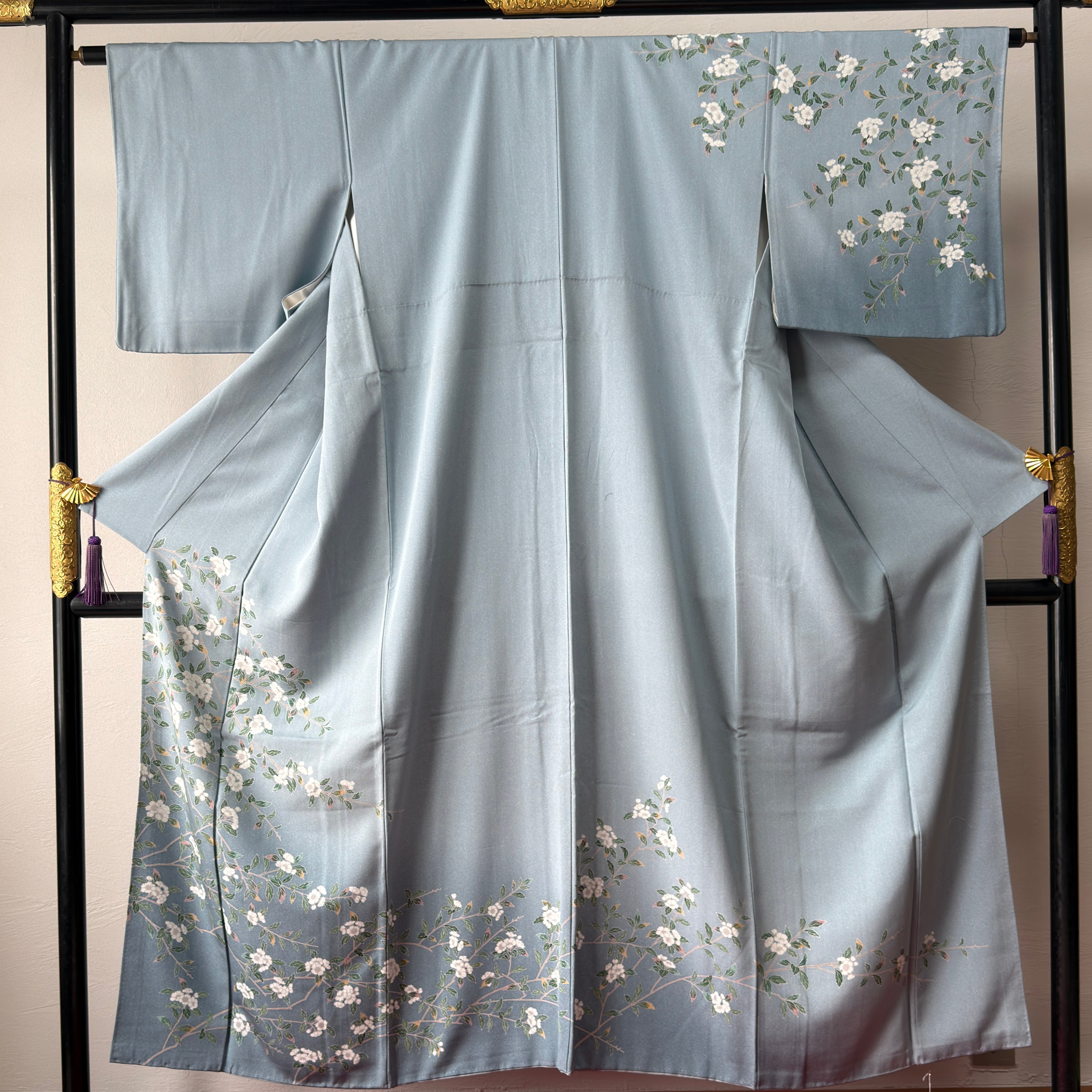 白花の枝模様が優雅に描かれた加賀友禅のお着物。