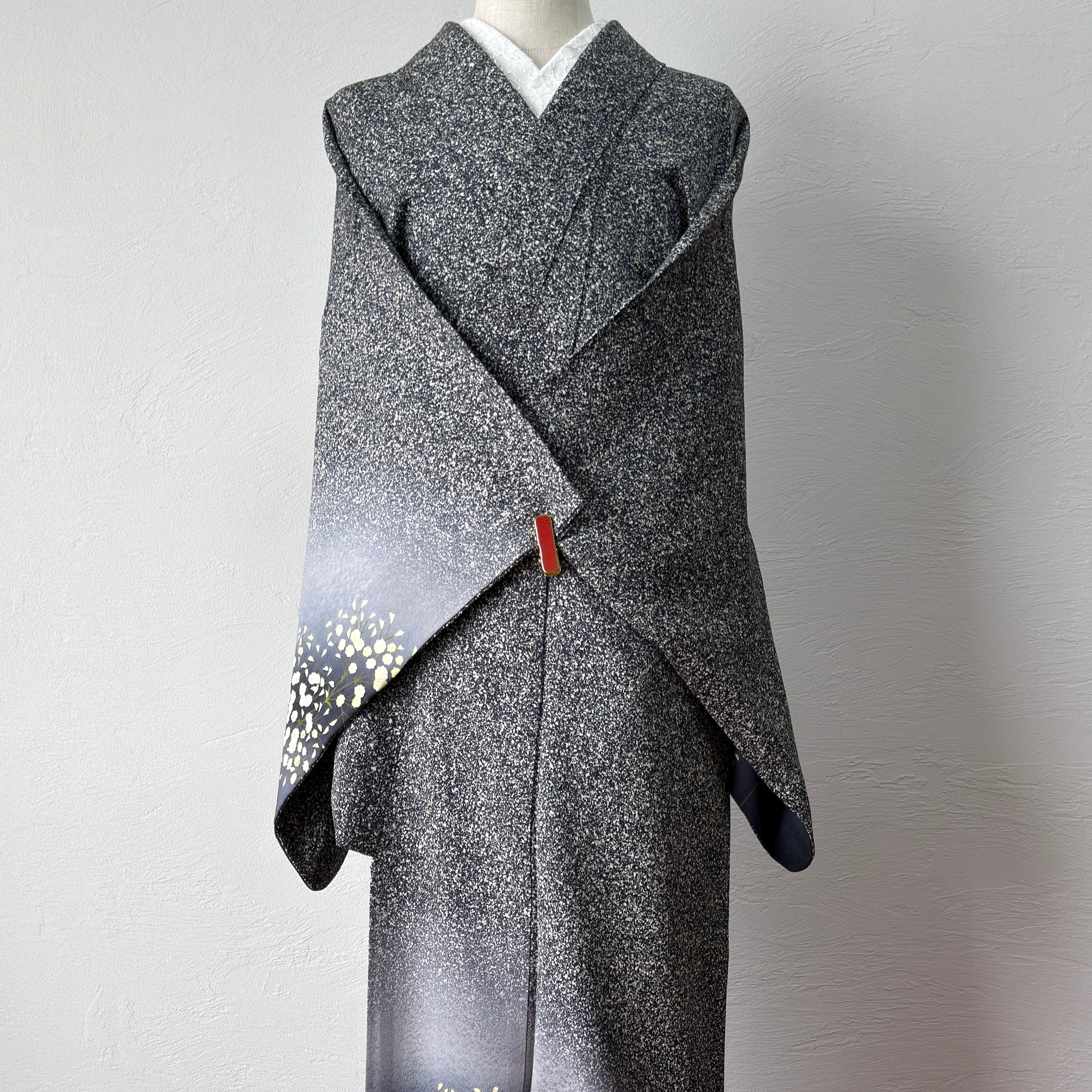 ところどころに絞りの小花が施された上品なお着物です。