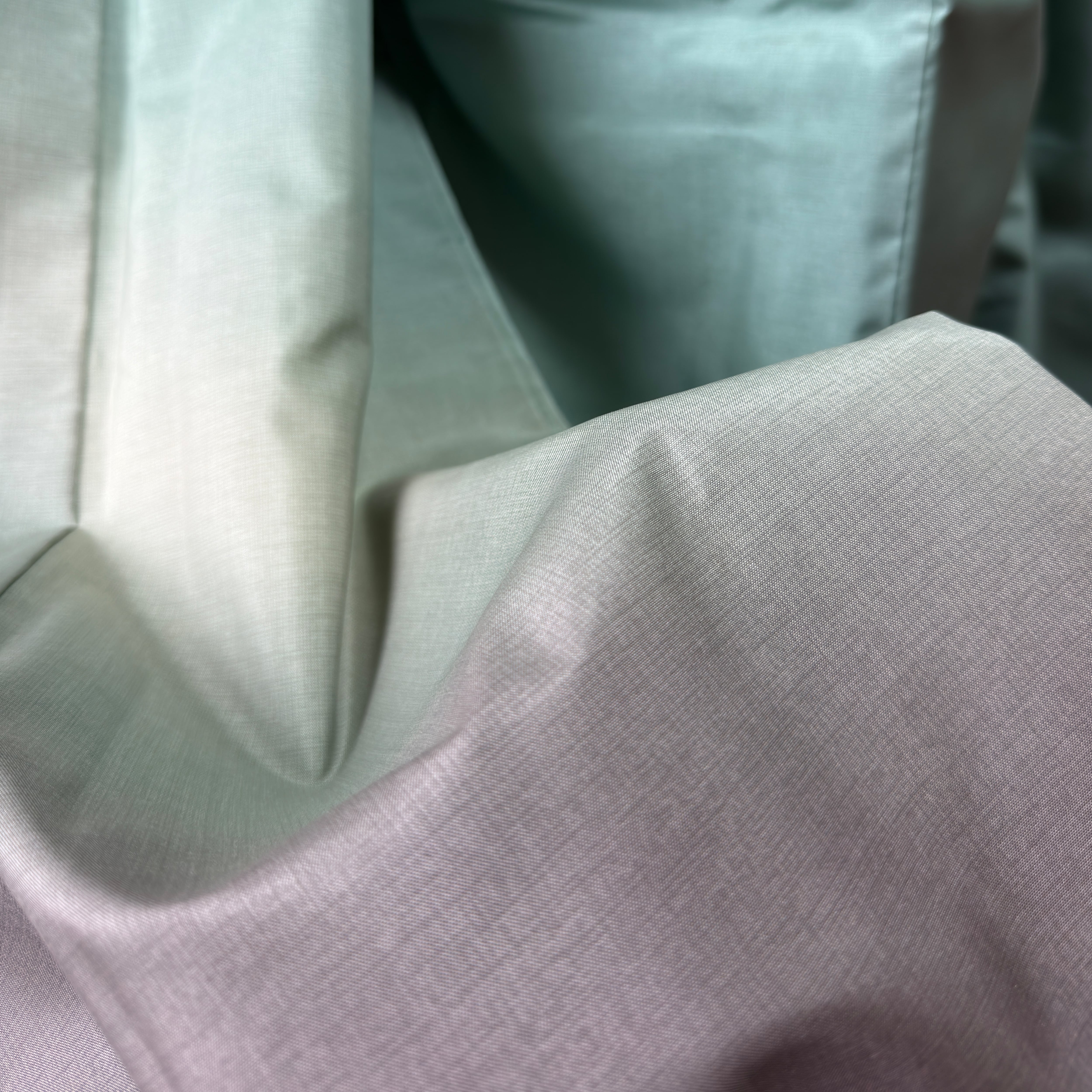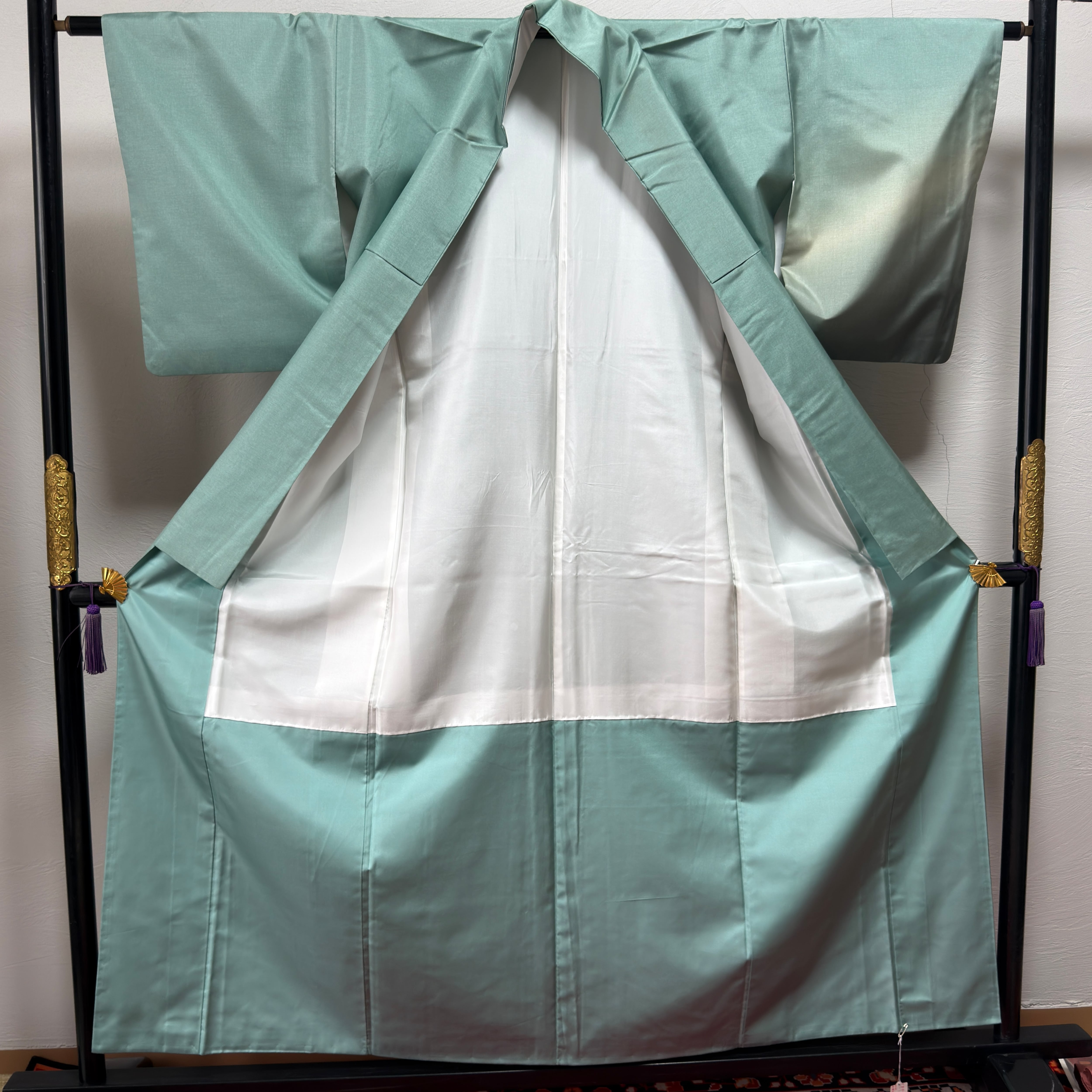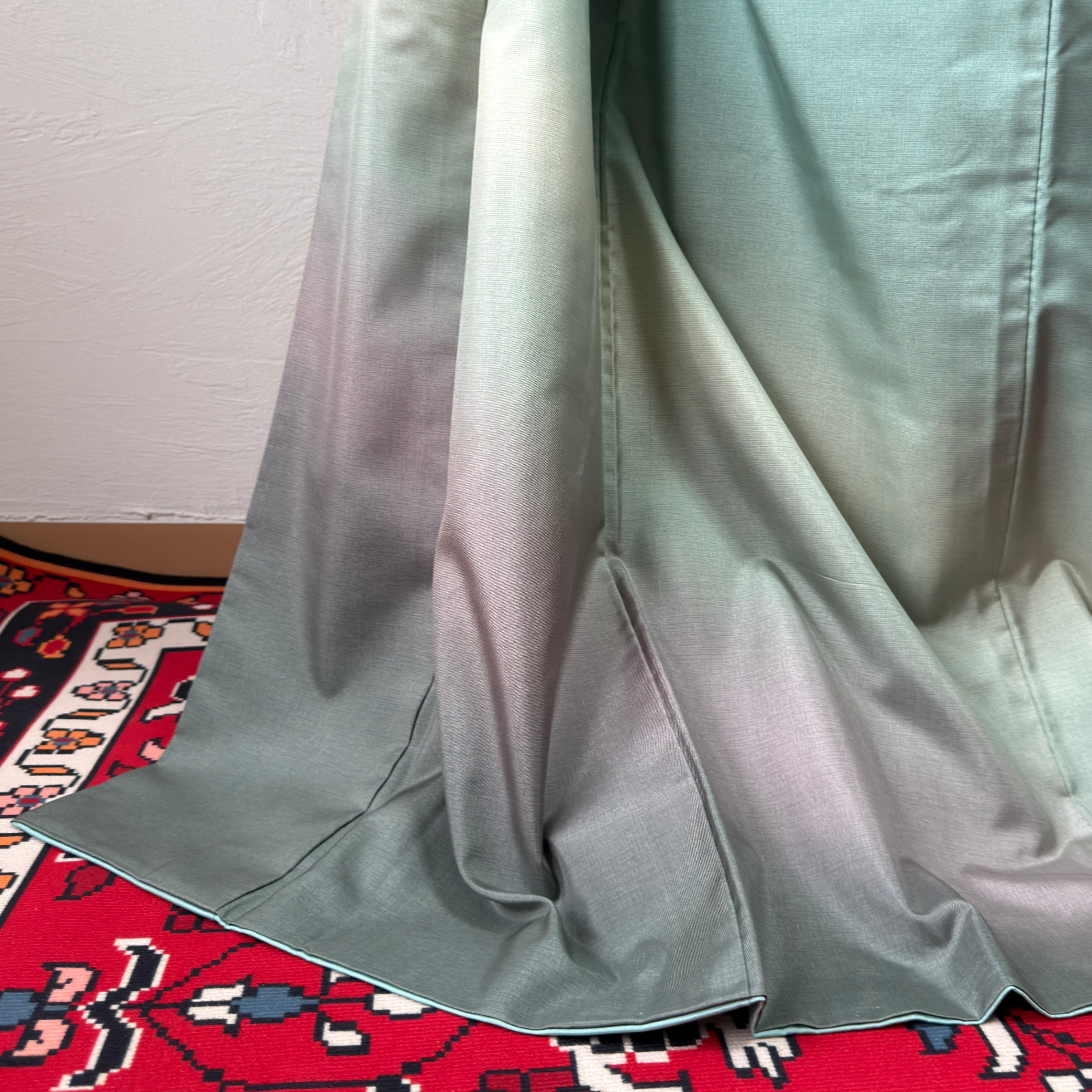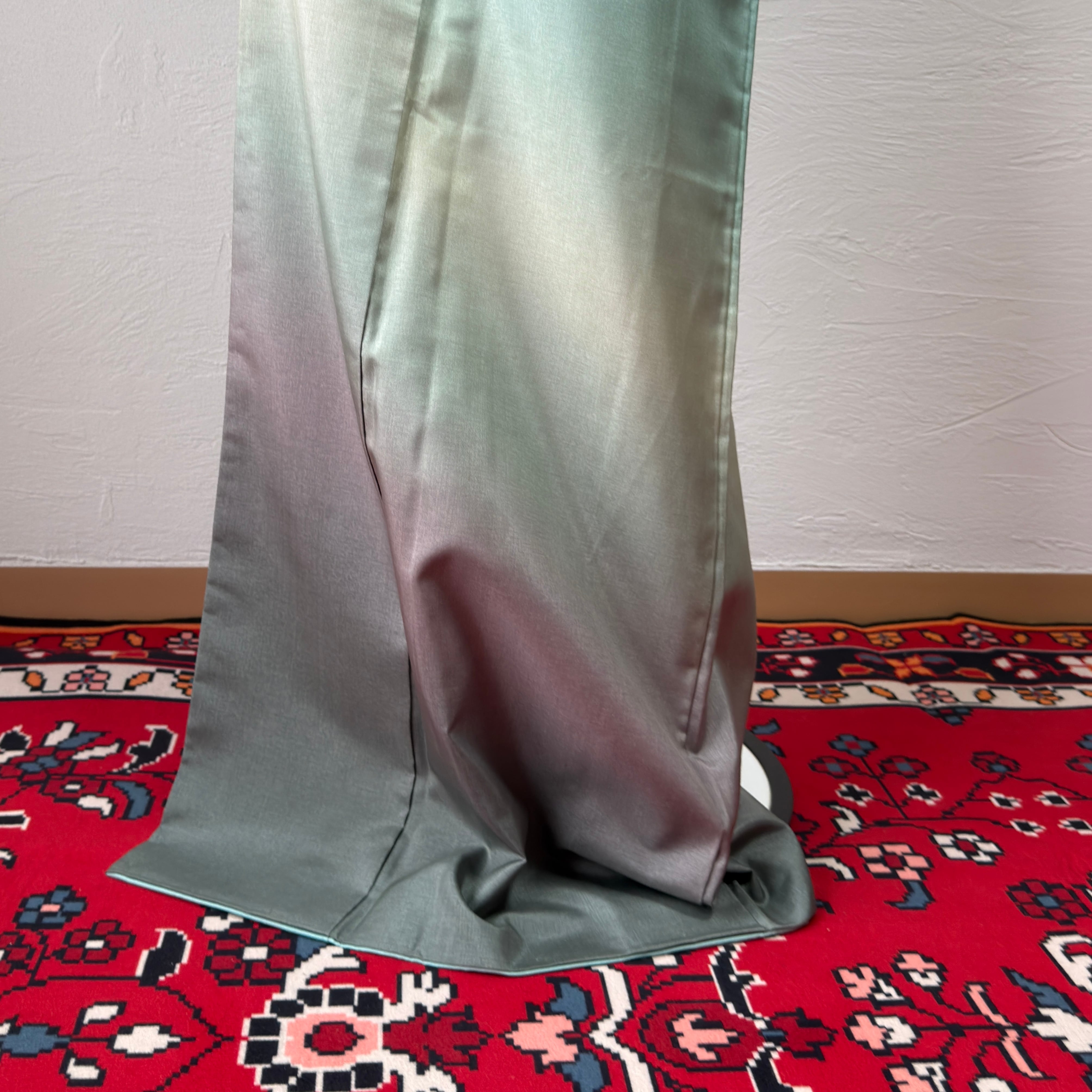 やわらかな青緑から裾にかけて淡い紫が溶け込む
