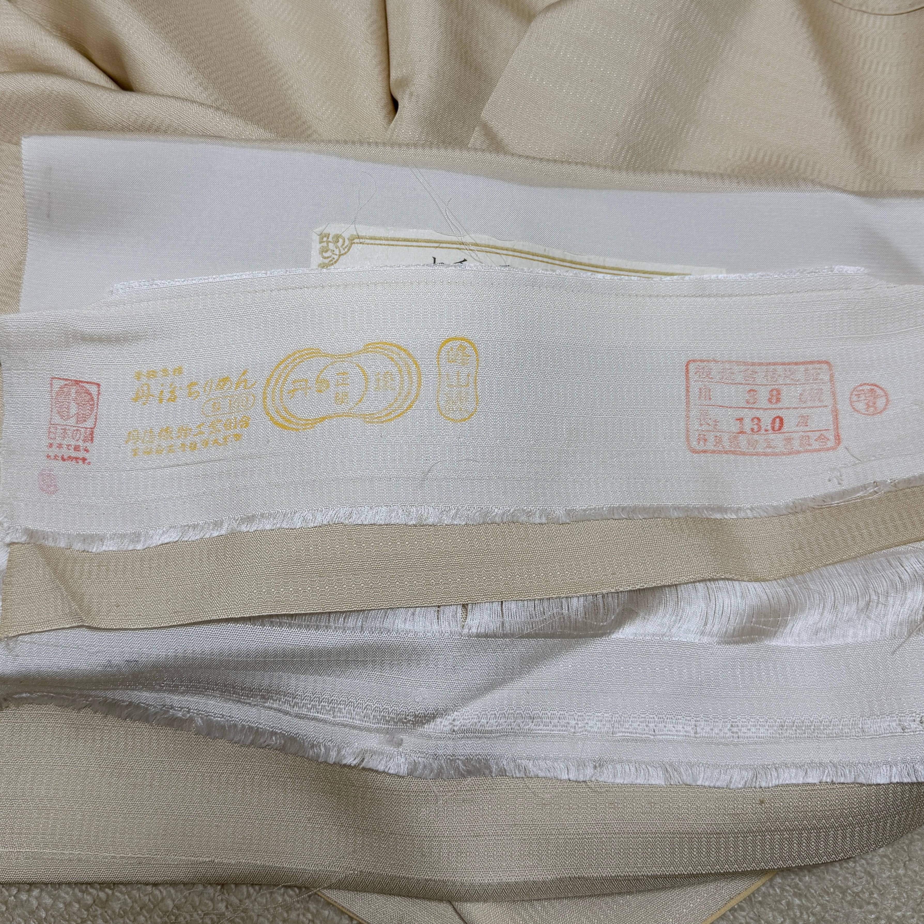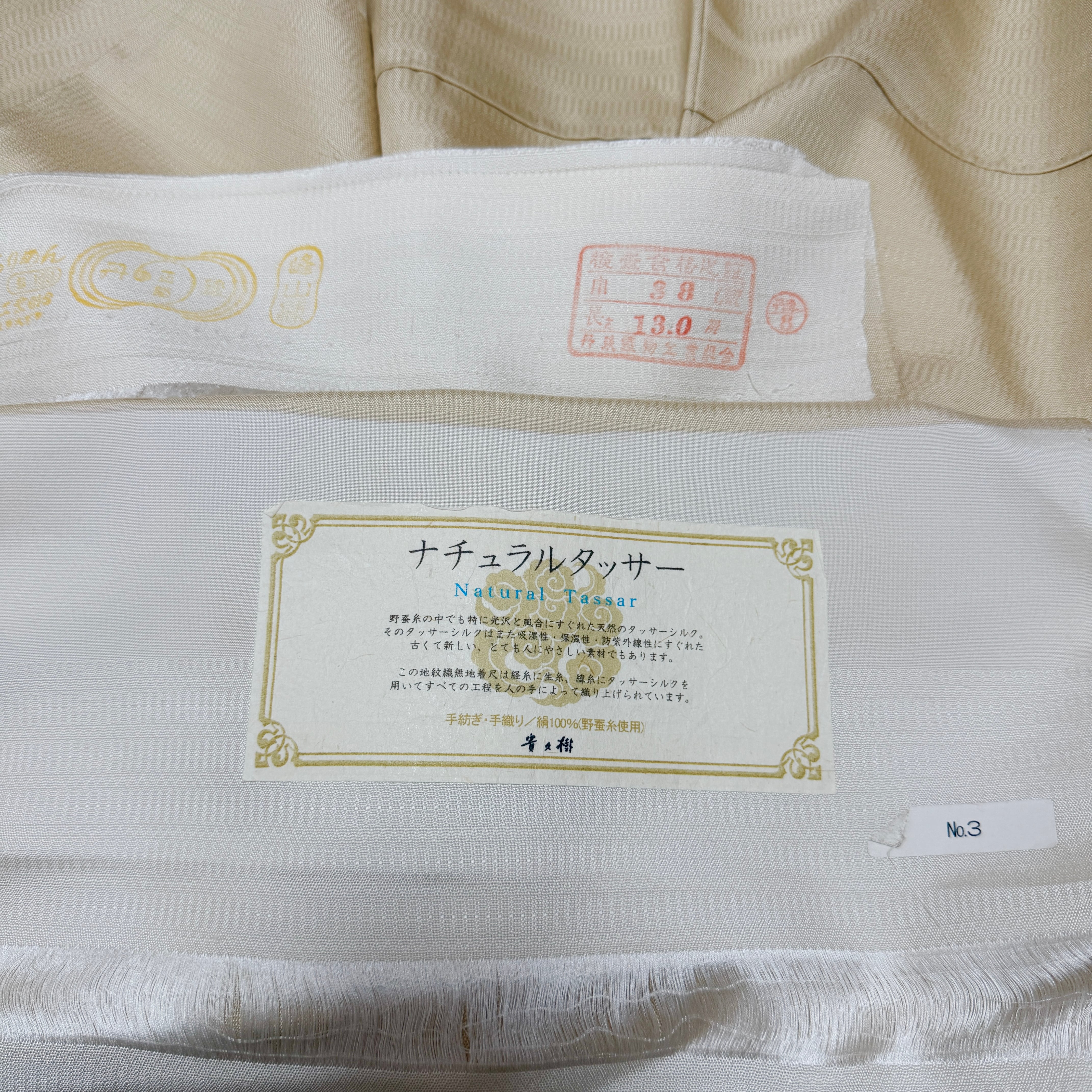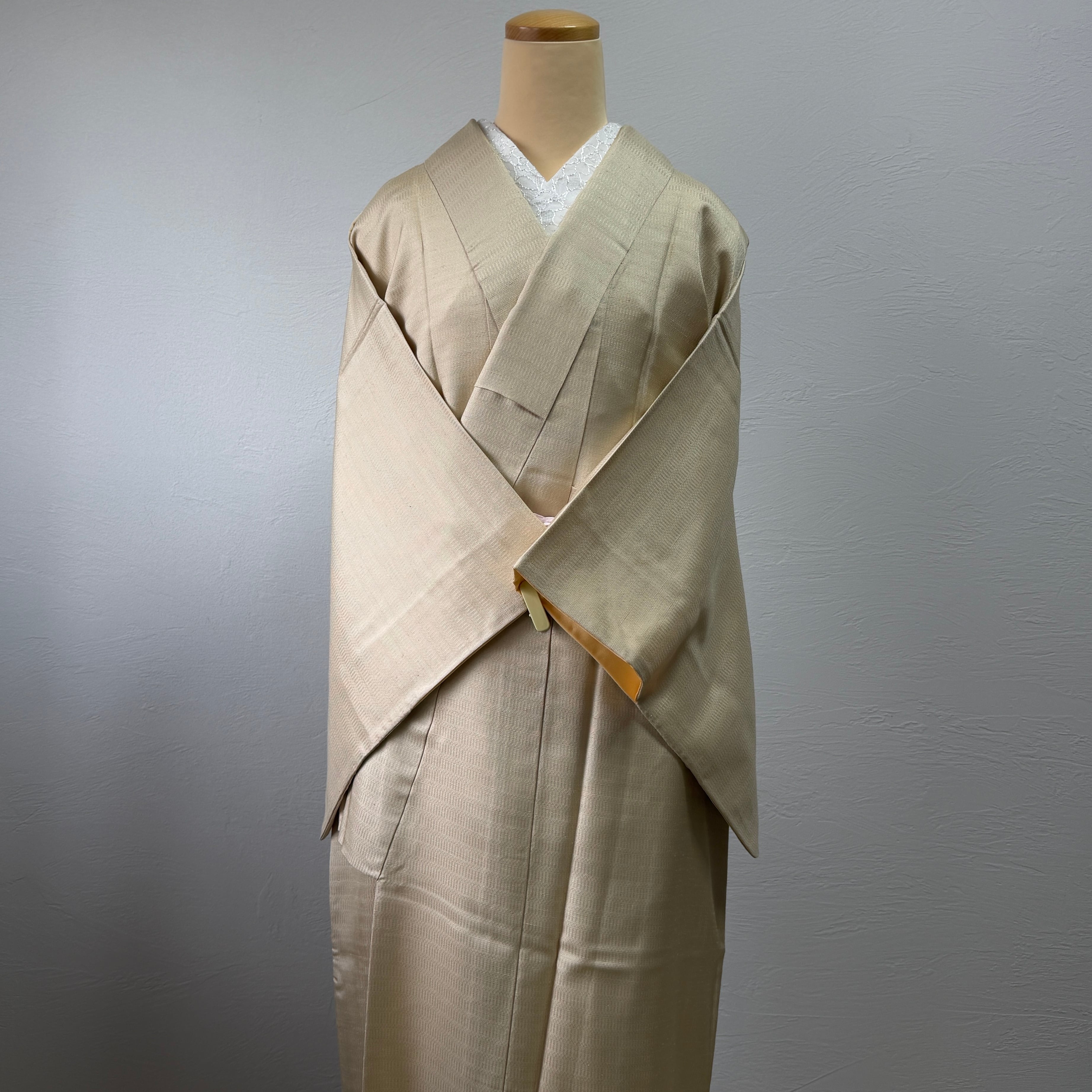 貴久樹 ナチュラルタッサー 着物 正絹 無地感 ベージュ系|紬 高級素材 カジュアル セミフォーマル