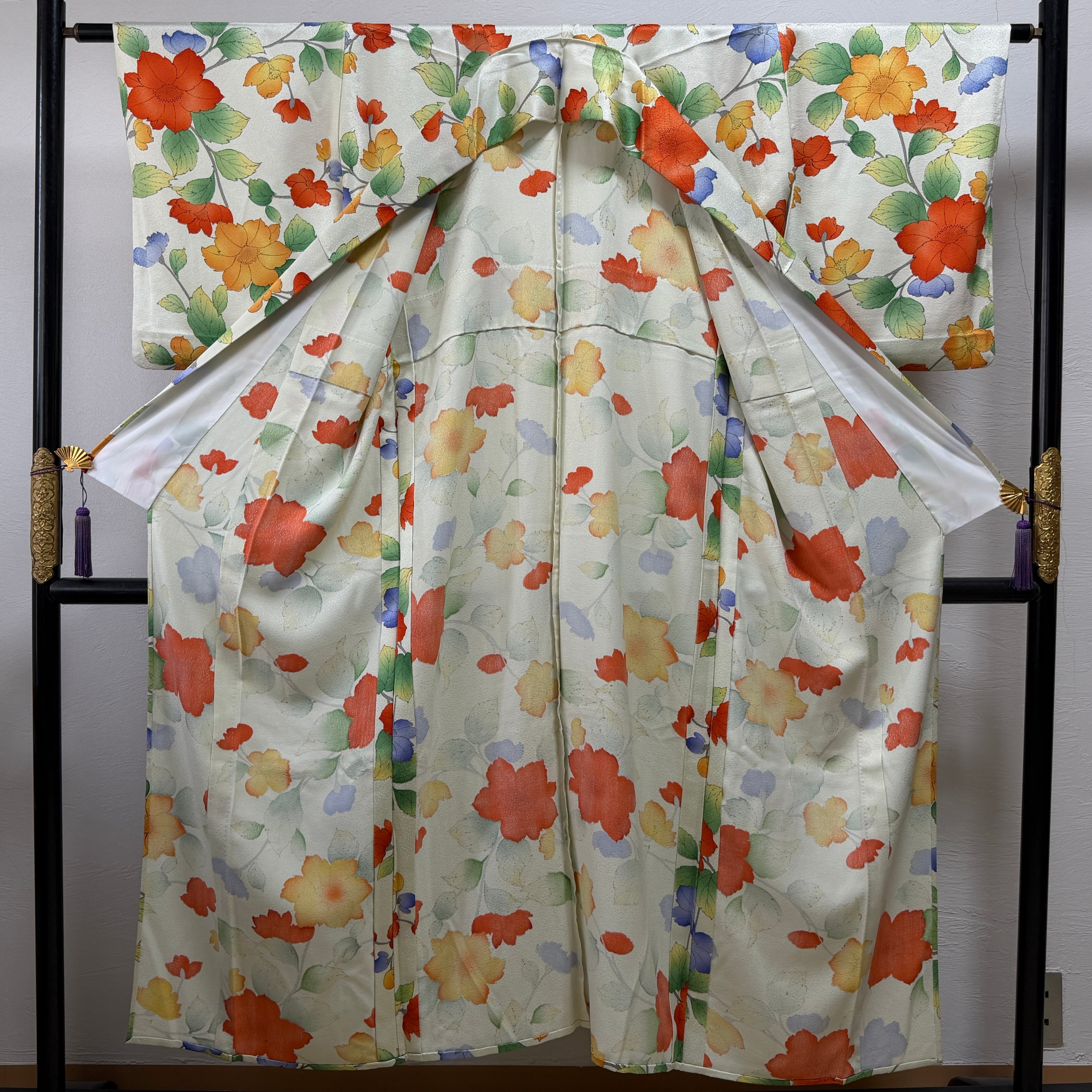 【正絹 小紋 カラフル 花柄】ポップ 着物 おしゃれ着 可愛い 個性派 カジュアル 映え 観劇 カフェ 身丈148cm(マ)